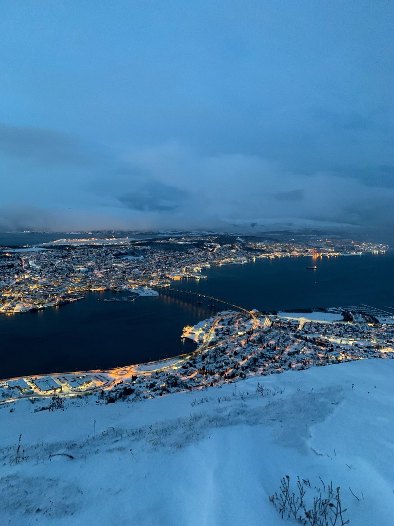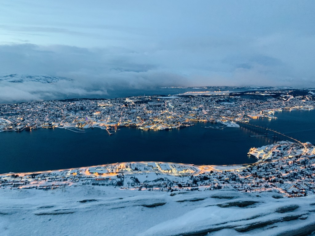 Being in Tromsø feels simultaneously like living in a dream and being in the twilight zone. Being in the Arctic Circle was so surreal and the few hours of sunlight we had were hazy and had a way of making us lose track of time. Tromsø in the winter is permanently enveloped by a blurry aura that imposes a sense of stillness and the feeling as if the world was dipped in blue ink.