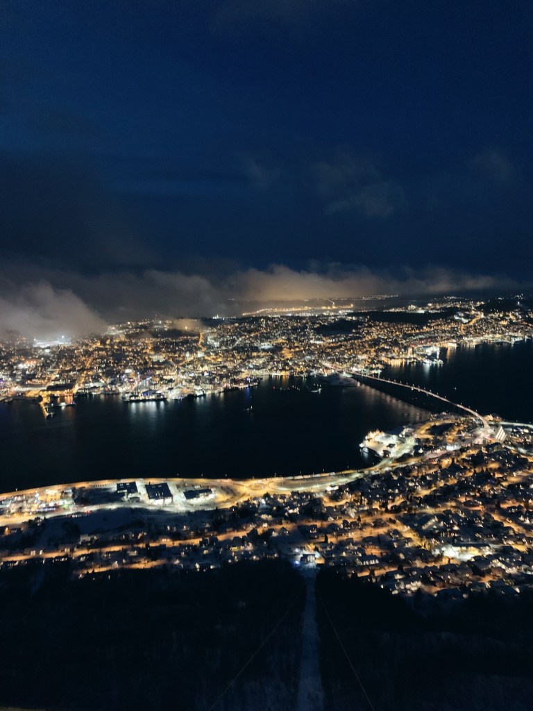 There are incredible views everywhere, and we took the Fjellheisen (cable car) up the mountain, where I witnessed some of the most breath-taking views I’d ever seen in my life. It felt like we were standing on the edge of the world up there. The sun was still up when we took the cable car up, and as we sat in the café in the sky darkened to “night,” which offered a completely different view of the city.