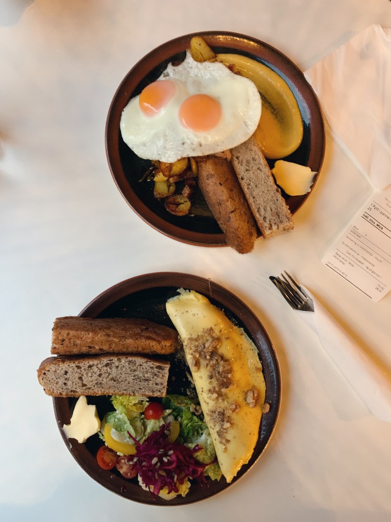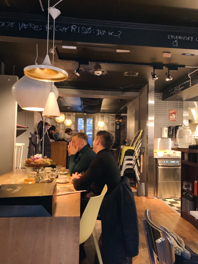 I think we were in a perpetual state of awe while we were here. I’d never seen so much snow in my life (I’m from SoCal, ok) – overnight, it snowed so much that the world looked brand new, with a thick layer of fresh layer of powder covering every surface. Tromsø days feel slow, and my days here also seemed to move at a much lazier pace than the rest of my trip. Our first day was spent first with a breakfast at the Risø Mat & Kaffebar, a cozy coffee shop with a small, but delicious breakfast menu. Stop by for a hot cup of coffee, omelette, breakfast platter, or sandwich.