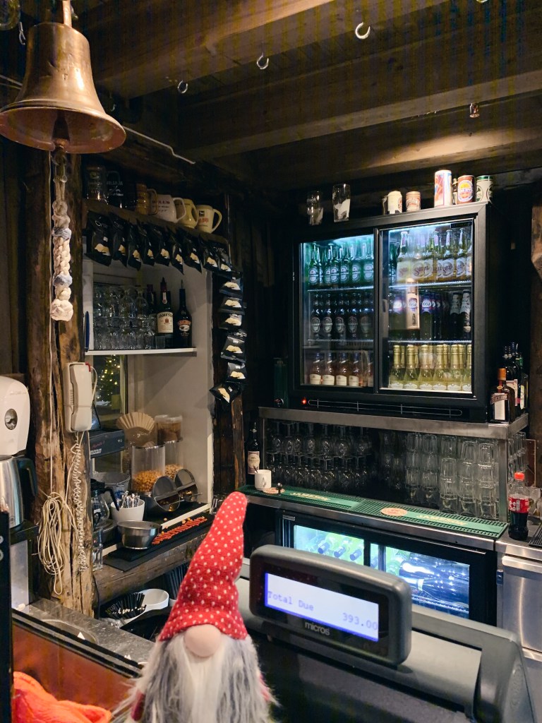 Especially compared to these exceptional views, the food in Tromsø is aggressively average – typical American / European fare. We stopped at Rorbua Pub, where they literally had a stuffed polar bear and a band that played American rock music, for a few beers and pizzas. Honestly not too bad, especially in the cold weather, but not too crazy. The vibes were definitely fun, though.