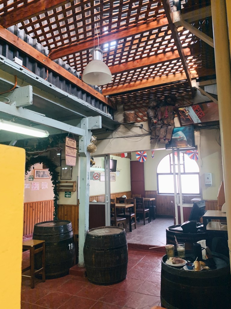 If I were to return, I’d hope to try more local restaurants, though personally I cannot say I greatly enjoy traditional Chilean food or drink. On our last day, we visited El Hoyo, where meat-eaters can enjoy large plates of meat and fries, but vegetarians will pretty much subsist on lettuce, tomatoes, boiled potatoes, and fried eggs. The drinks are strange but worth a try! There’s one that’s reminiscent of eggnog and another that tastes sort of like a rum and coke.